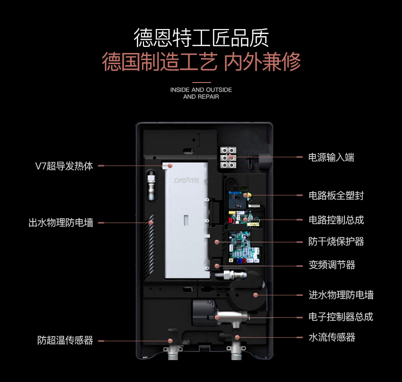 德恩特品牌旗下涵蓋即熱式電熱水器,速熱式電熱水器,快熱式電熱水器品牌和凈水機(jī)等